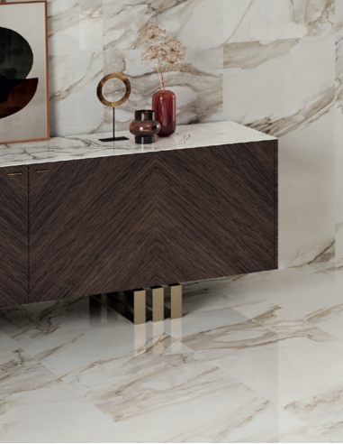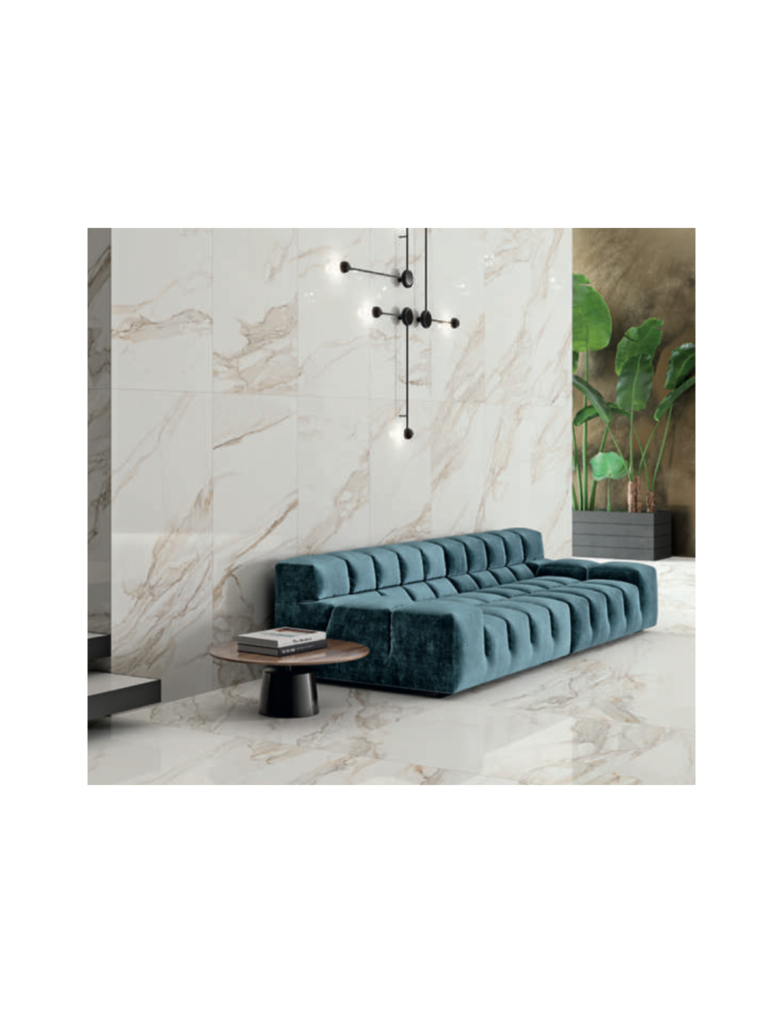 El Calacatta Gold tiene el mismo origen que el mármol Blanco Carrara, aunque se distingue de éste por tener unas vetas mucho más pronunciadas y con un color que puede ir desde el dorado hasta el marfil o marrón claro.