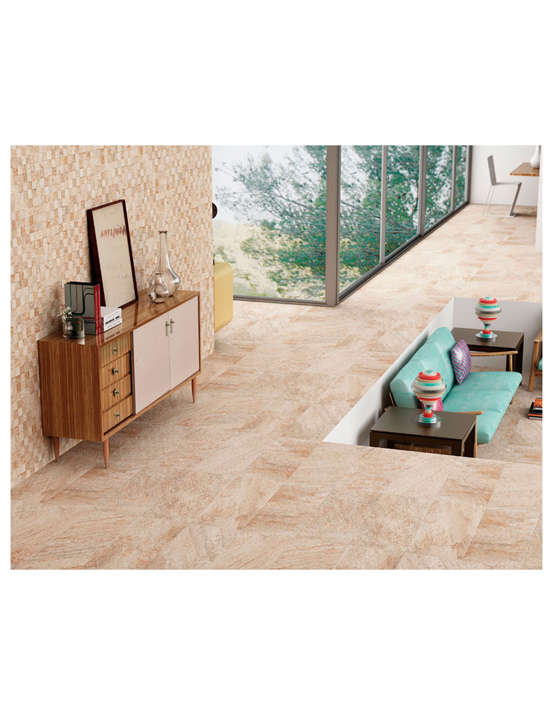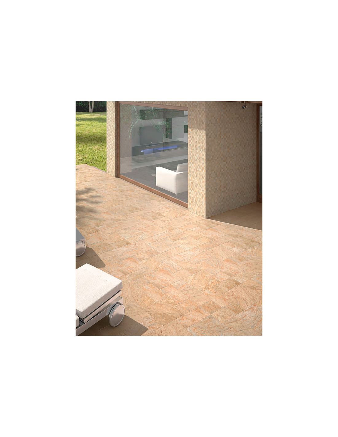 La serie Quarzite no deja a nadie indiferente gracias al diseño y textura de auténtica piedra. Pero la serie mejora estéticamente con un deco de mosaico multiformato muy conseguido para revestir cualquier muro interior o fachada (mismo precio que la base).