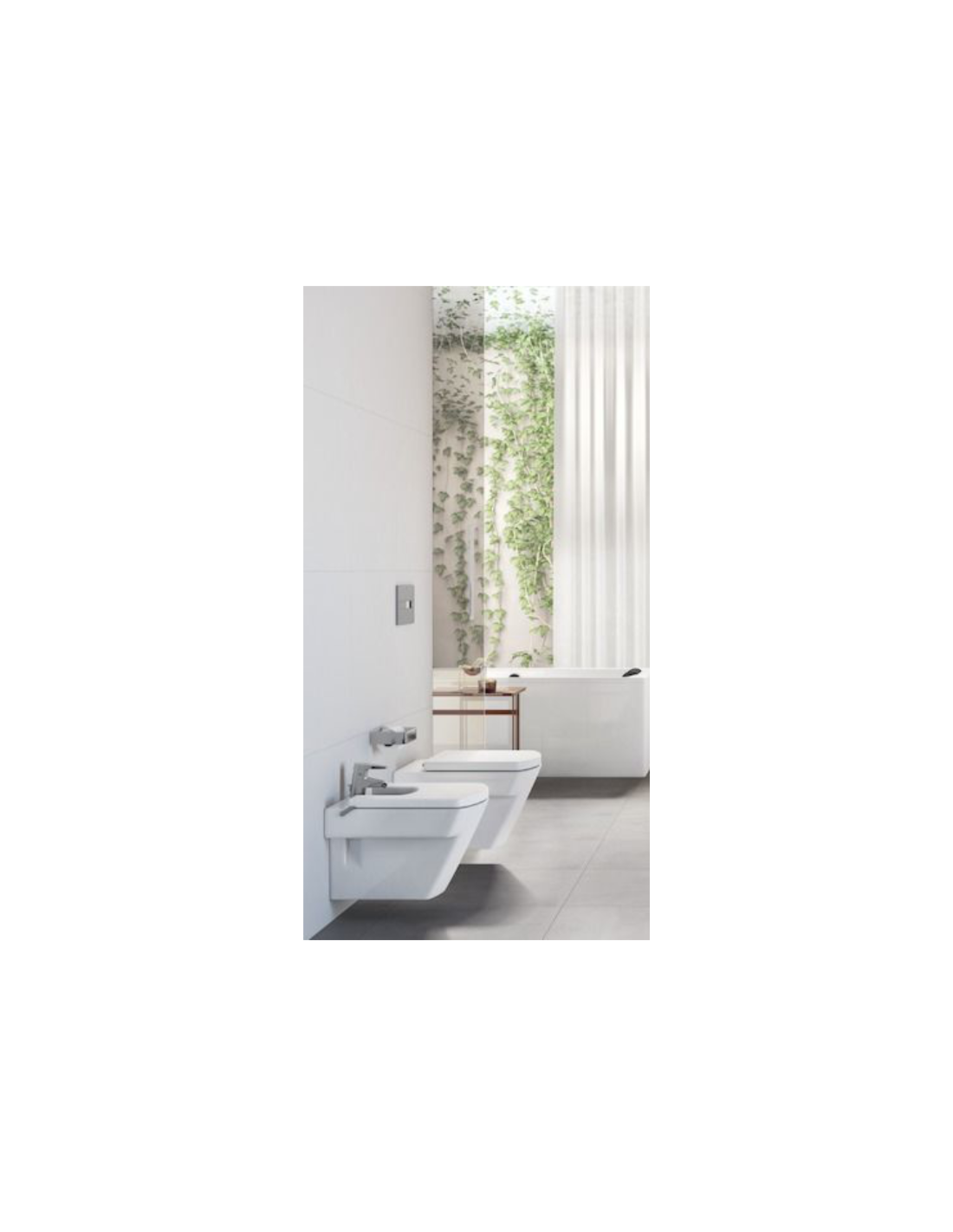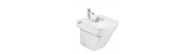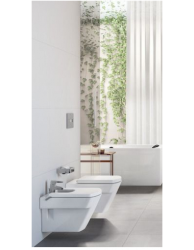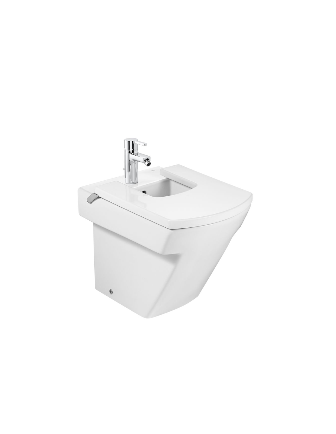 Bidé suspendido y tapa con bisagras metálicas. No incluye grifería. Para la instalación de bidés suspendidos se requiere un sistema de instalación Roca compatible.