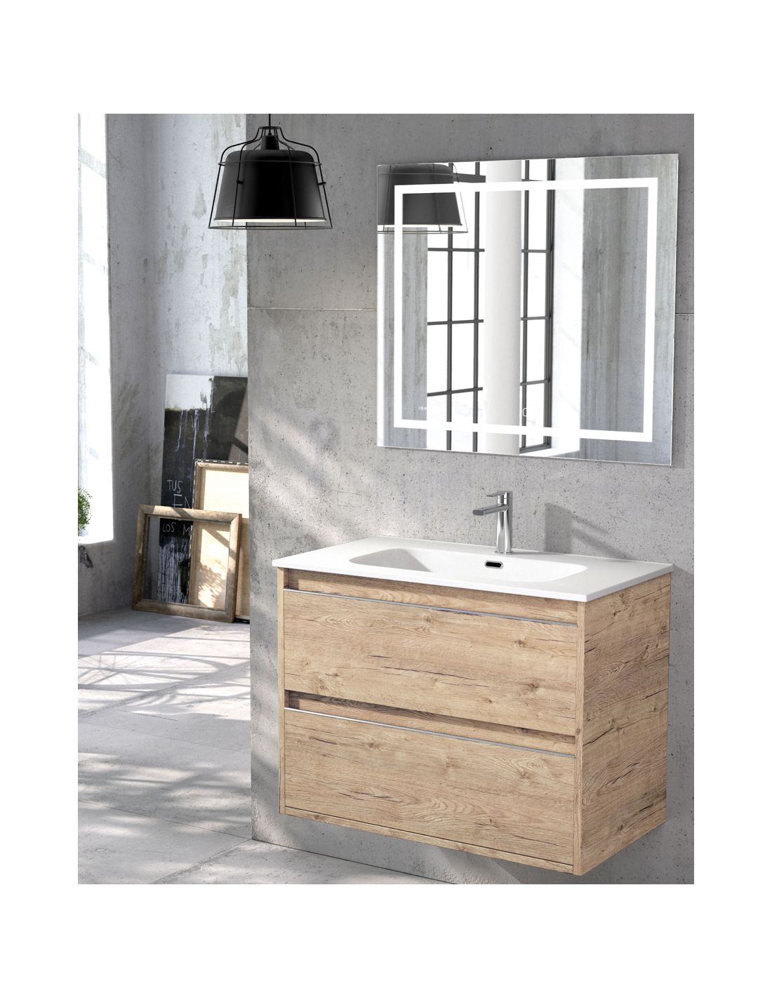 mueble 2c+ lavabo + espejo retroalimentación táctil + antivaho;