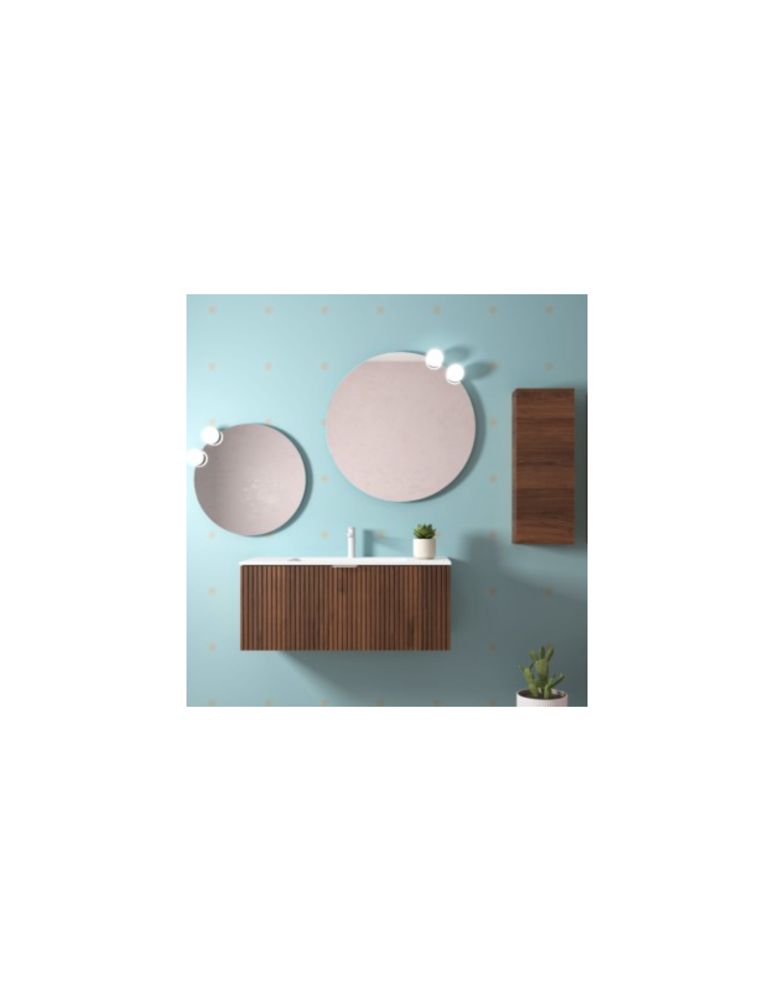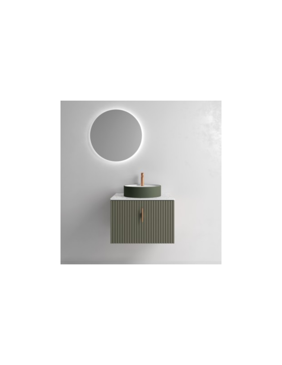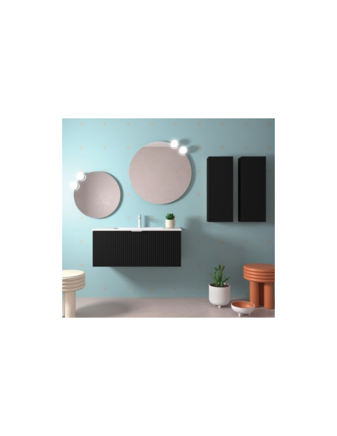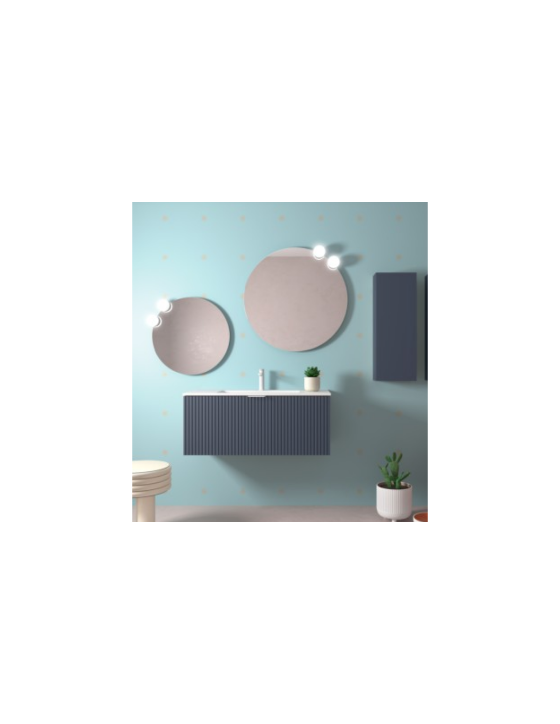 Esta colección de muebles de baño experimenta con nuevas texturas. Sus frentes mecanizados con ranuras verticales crean un patrón rítmico dándole sensación de movimiento.