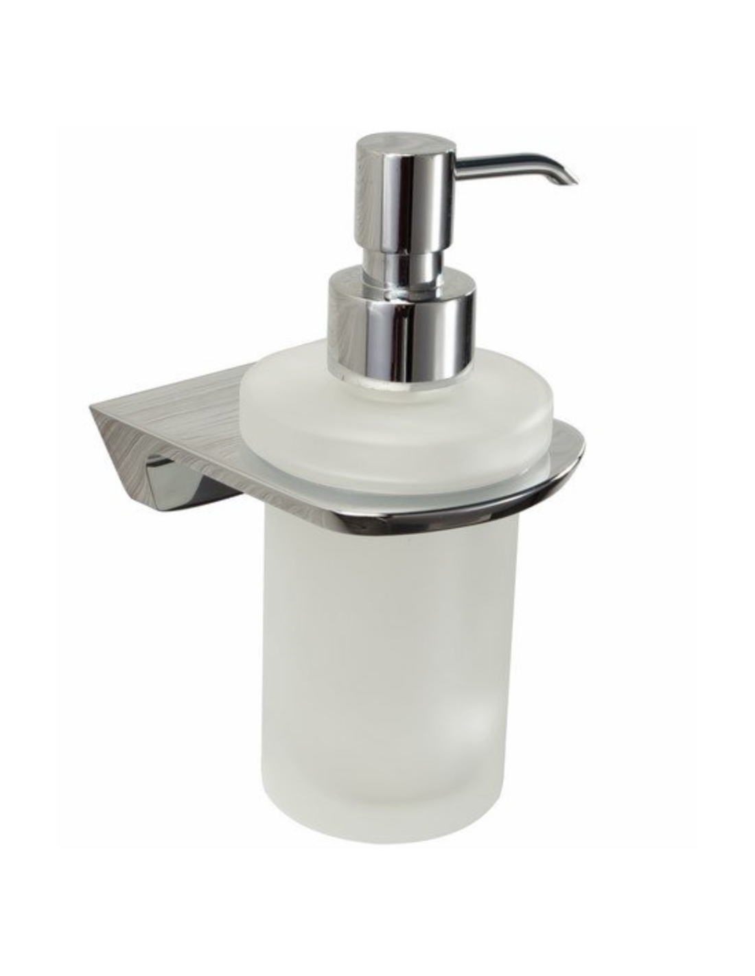 Dosificador para el gel del baño. Montaje a pared con tornillos o pegado con Mtglue, un adhesivo de ultima generación y con gran resistencia. Accesorio de baño en cromo.