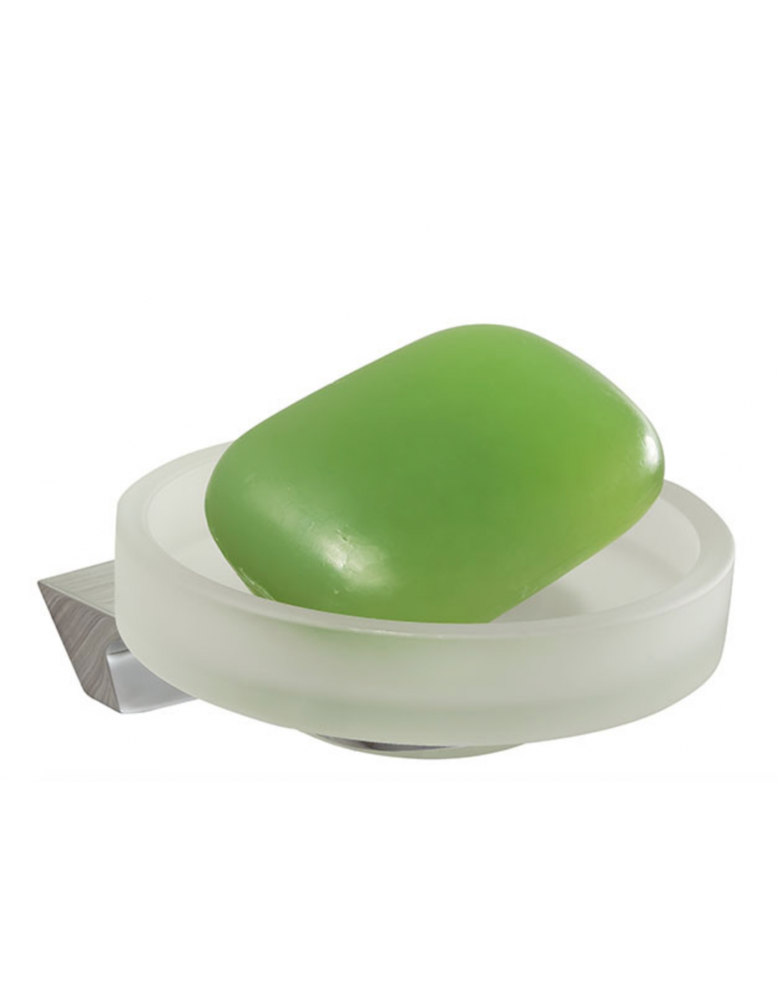 Jabonera de cristal para colocar la pastilla de jabón. Montaje a pared con tornillos o pegado con Mtglue, un adhesivo de ultima generación y con gran resistencia. Accesorio de baño en cromo.