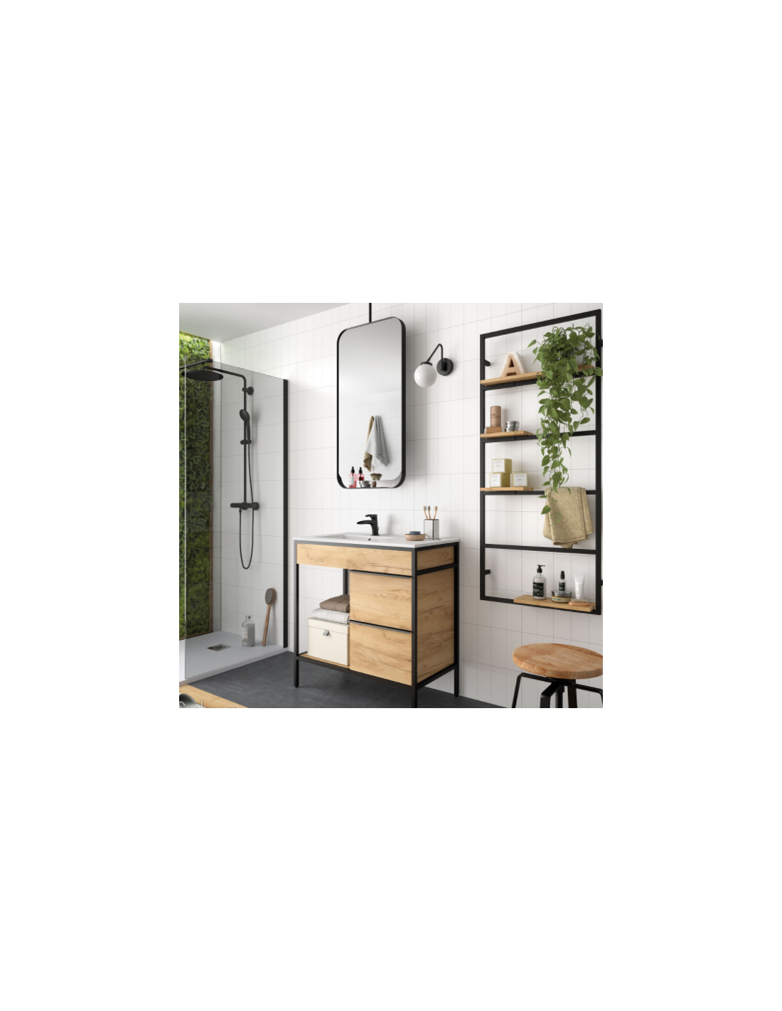 Espejo BLACK STREAM 500 vertical con marco metálico giratorio 500 x 1000 mm