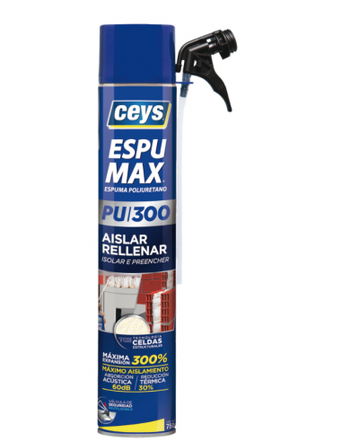 ESPUMAX Espuma de Poliuretano Aislar y Rellenar está especialmente indicada para trabajos de SELLADO, RELLENO Y AISLAMIENTO ACÚSTICO Y TÉRMICO.