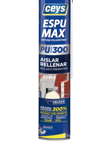 ESPUMAX Espuma de Poliuretano Aislar y Rellenar está especialmente indicada para trabajos de SELLADO, RELLENO Y AISLAMIENTO ACÚSTICO Y TÉRMICO.
