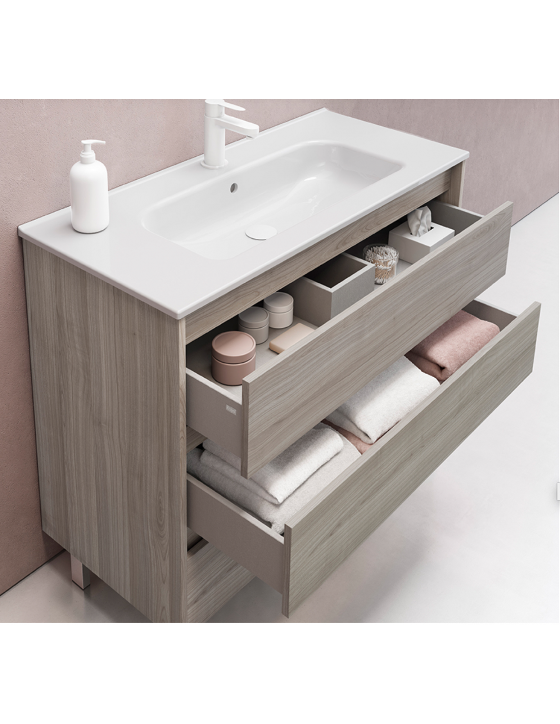 La belleza atemporal de la serie SANSA crea ambientes únicos y envolventes que reflejan la funcionalidad y delicadeza de sus formas rectas con su tirador integrado.
