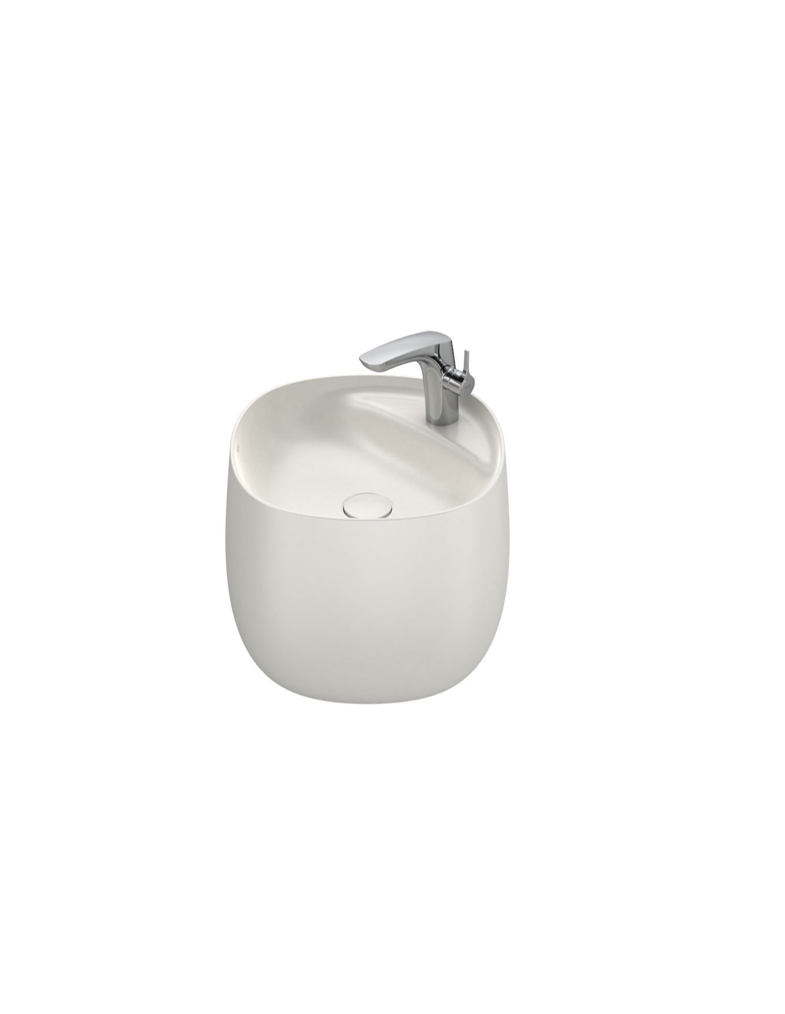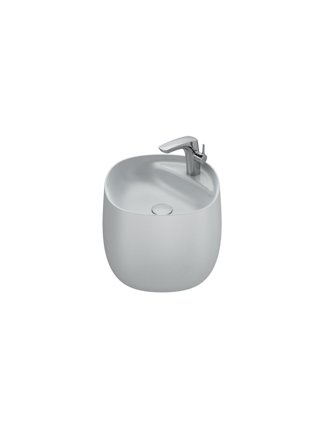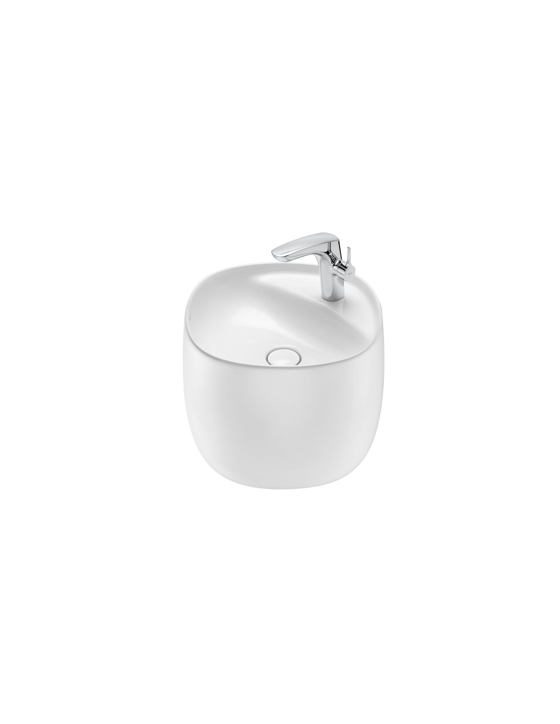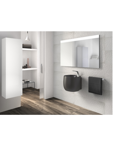 Lavabo de FINECERAMIC® mural con semipedestal integrado. No incluye grifería. Incluye desagüe universal con tapón cerámico Ø 72 mm.