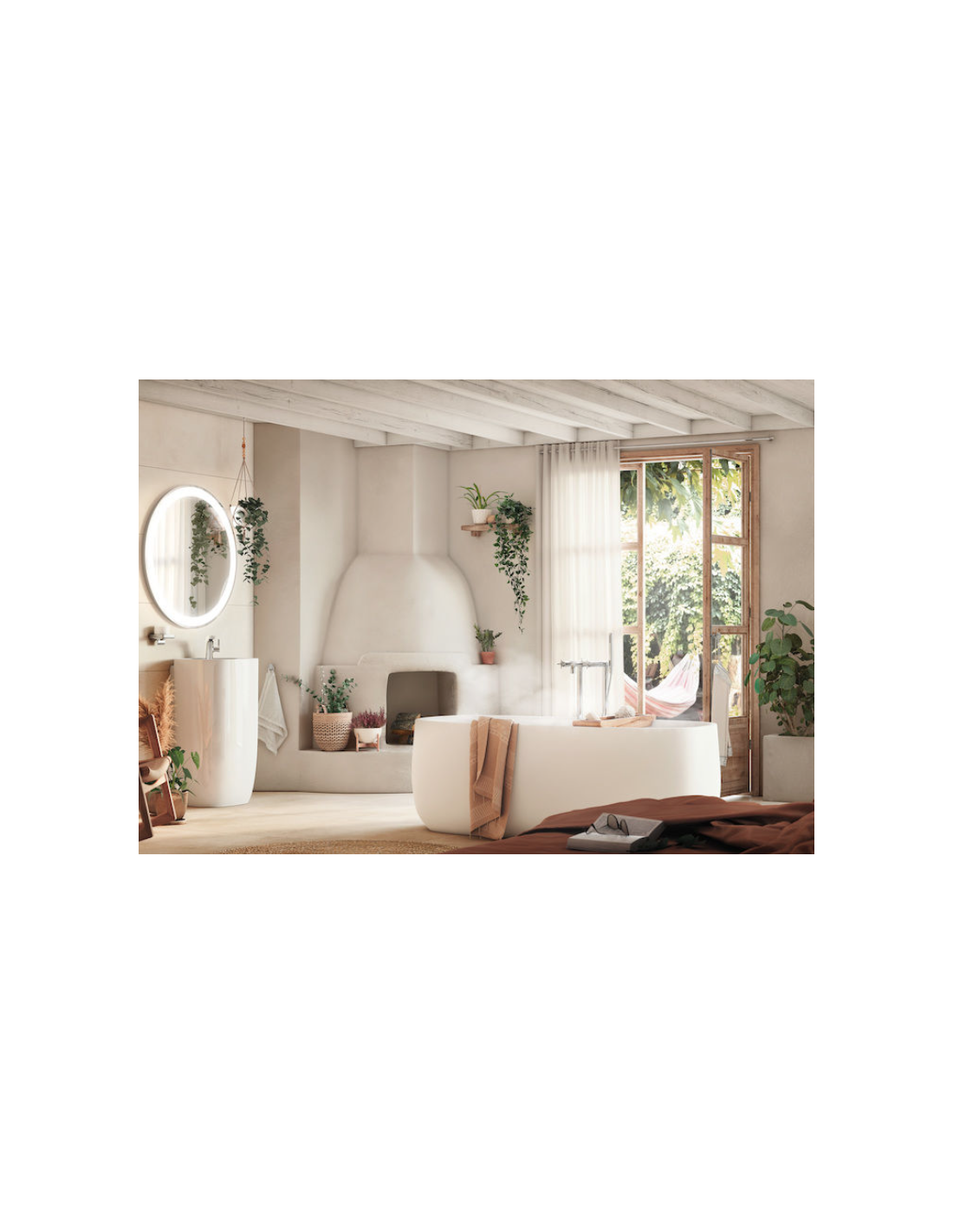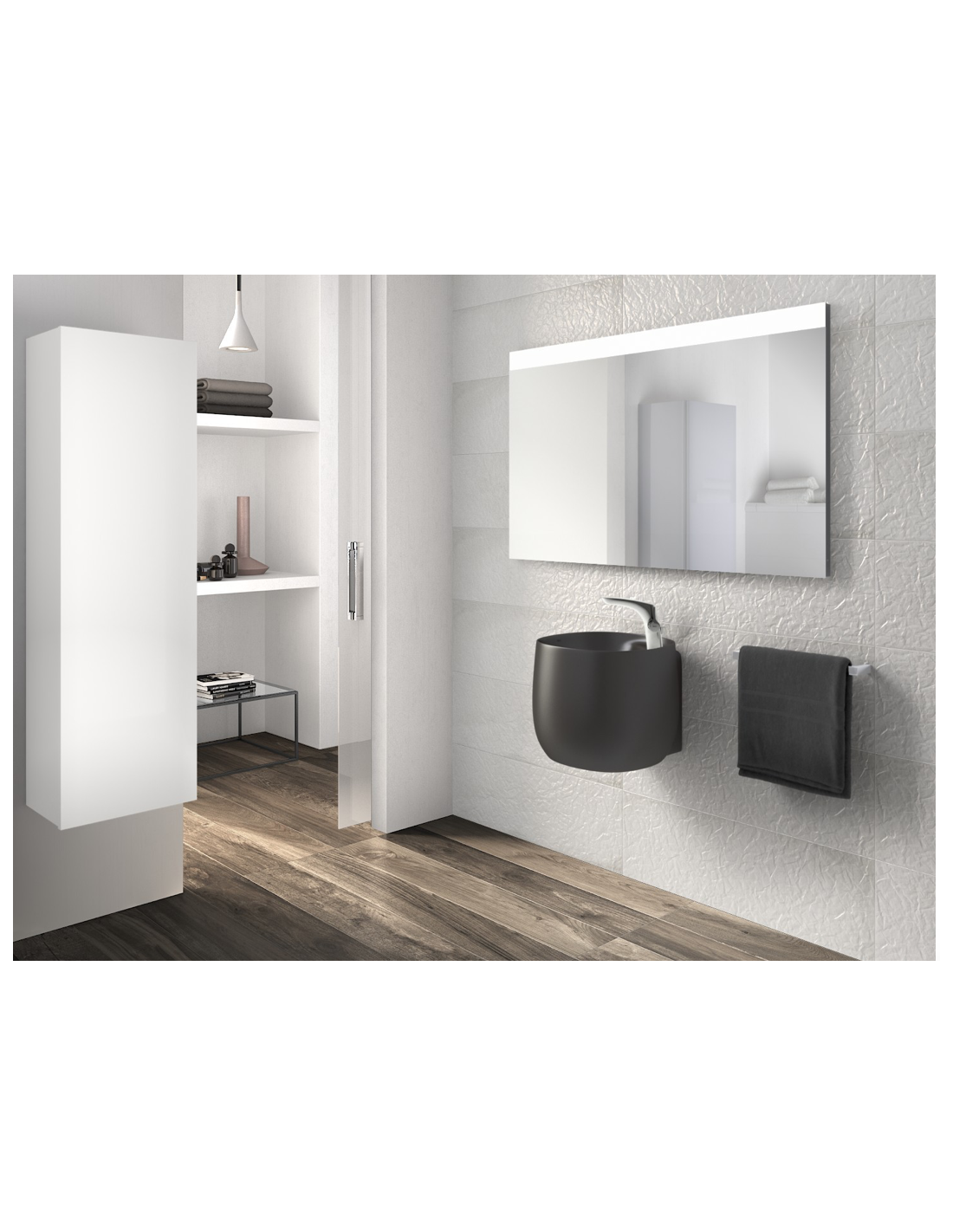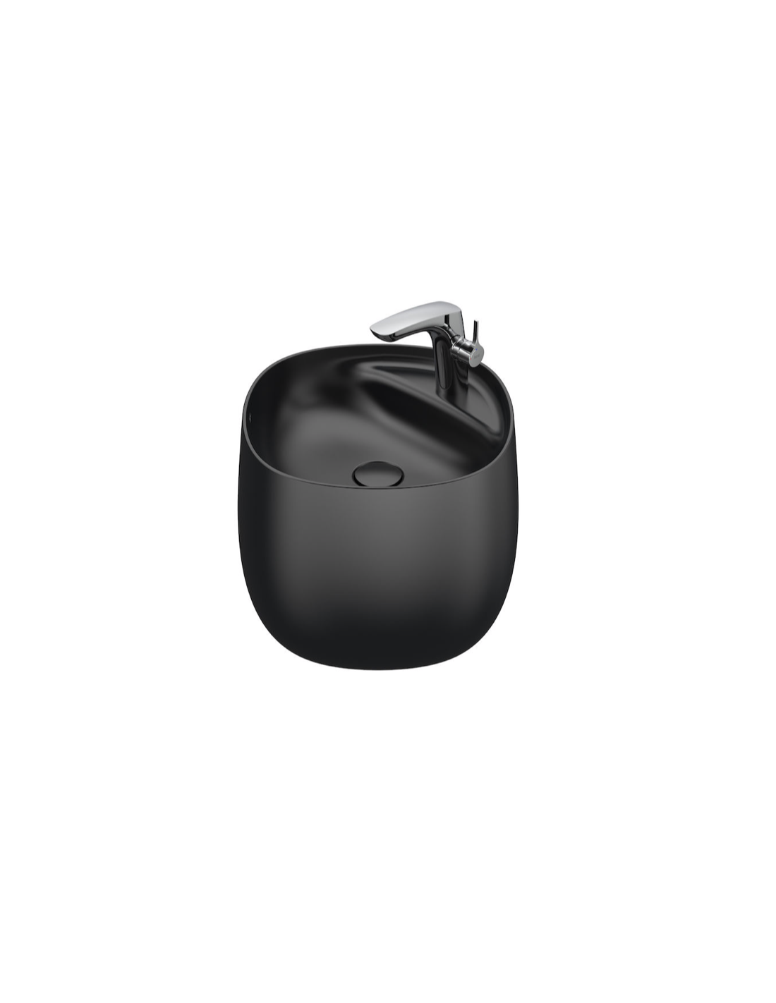 Lavabo de FINECERAMIC® mural con semipedestal integrado. No incluye grifería. Incluye desagüe universal con tapón cerámico Ø 72 mm.