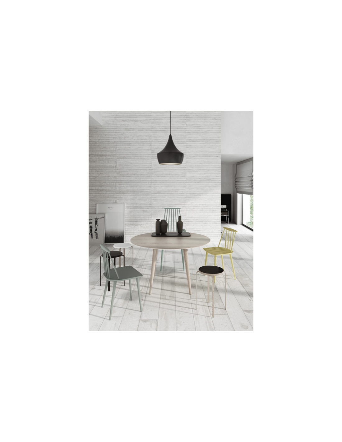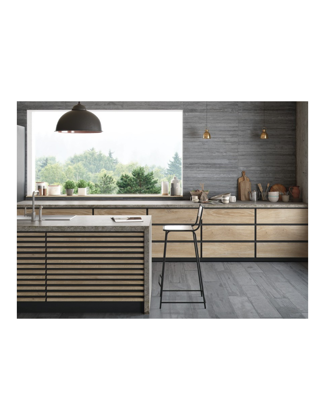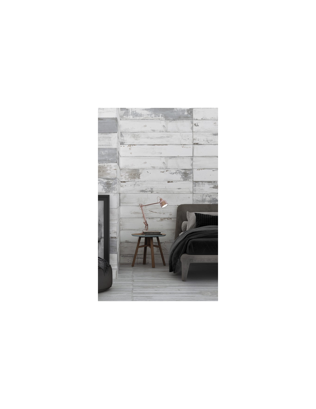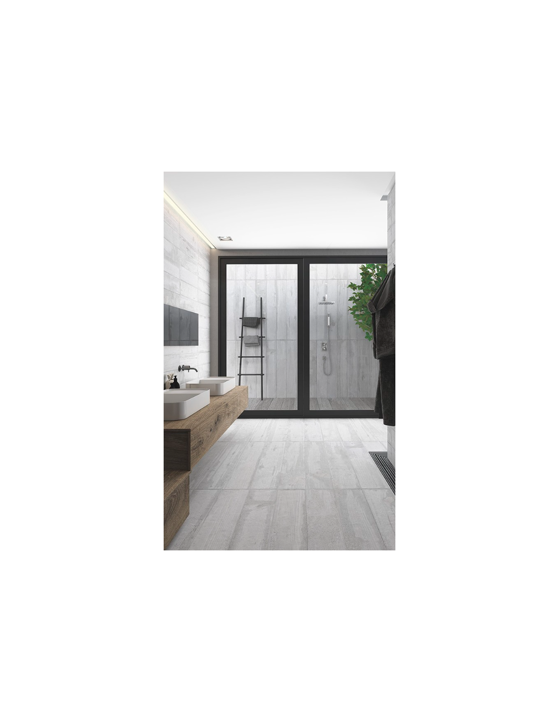 La serie Studio se presenta en los formatos 60×120 y 45×90 como pieza entera con 3 listones y cortado en tablillas de formato 20×120 y 15×90. La serie se complementa a nivel decorativo con una base de cemento arañado, como rayado con un alambre creando surcos longitudinales, en formato 45×90 y 32×62, disponible en los tres tonos Blanco, Gris y Marengo.