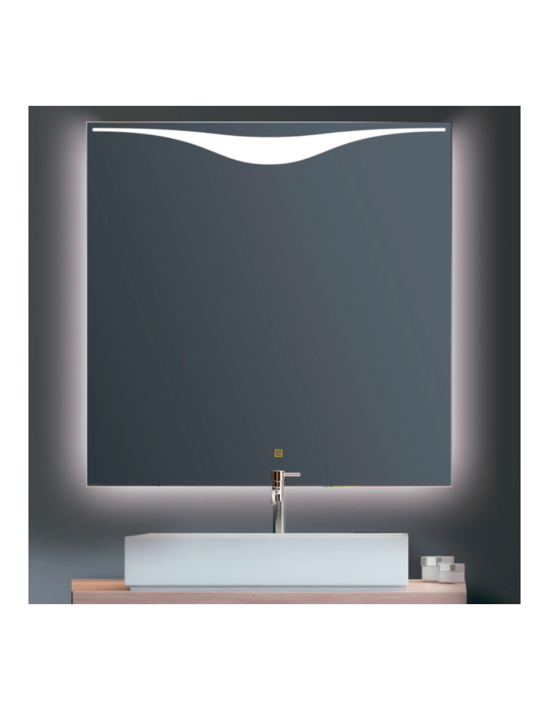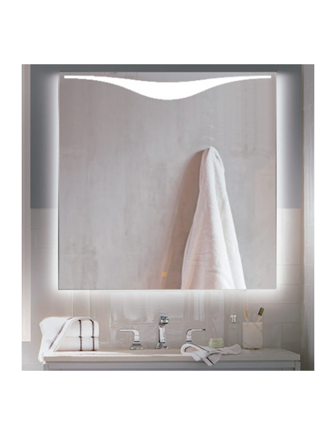 El espejo Clio tiene una luz decorativa que estiliza el espejo, y a su vez te ilumina para que puedas verte mejor. El espejo Clio dispone de iluminación led por su lado superior y una perimetral además de un sistema antivaho que evita la condensación en el espejo.