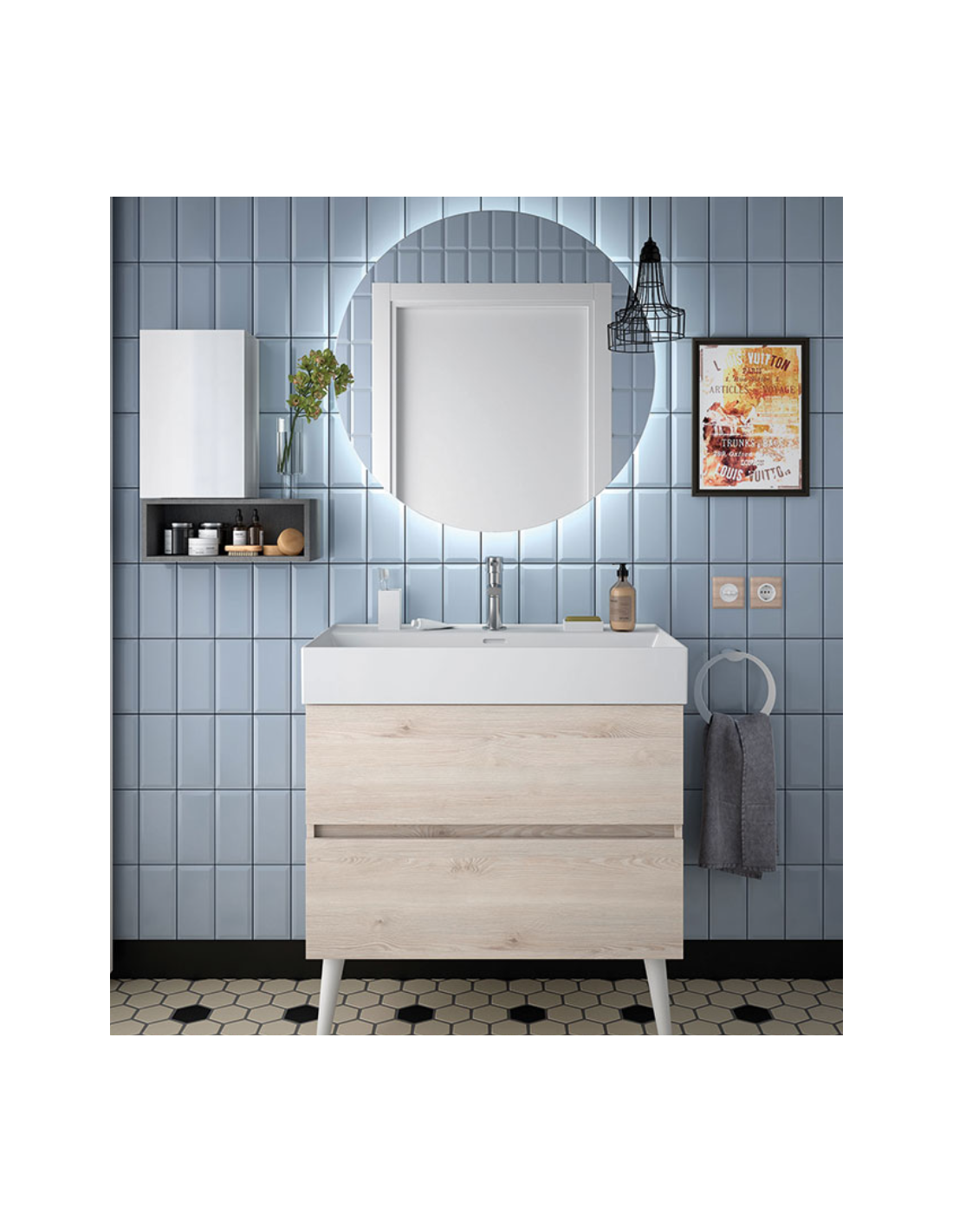 Este mueble, al igual que el resto de los de la serie, lo puedes combinar con las coquetas Fussion Line, disponibles en dos tamaños (250 y 400 mm), y/o con cualquiera de los auxiliares de la serie Alliance.