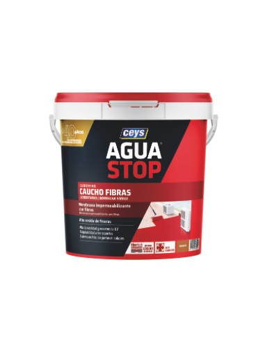 AGUASTOP CAUCHO FIBRAS es una membrana impermeabilizante para trabajos de impermeabilización en cubiertas. La tecnología FIBERTECH, reforzada con fibras poliméricas, le da una alta capacidad de cosido de fisuras y grietas en la superficie a tratar. Su fórmula, le confiere mayor resistencia mecánica y duración, ya que asegura que no se deteriore con el tránsito ocasional.