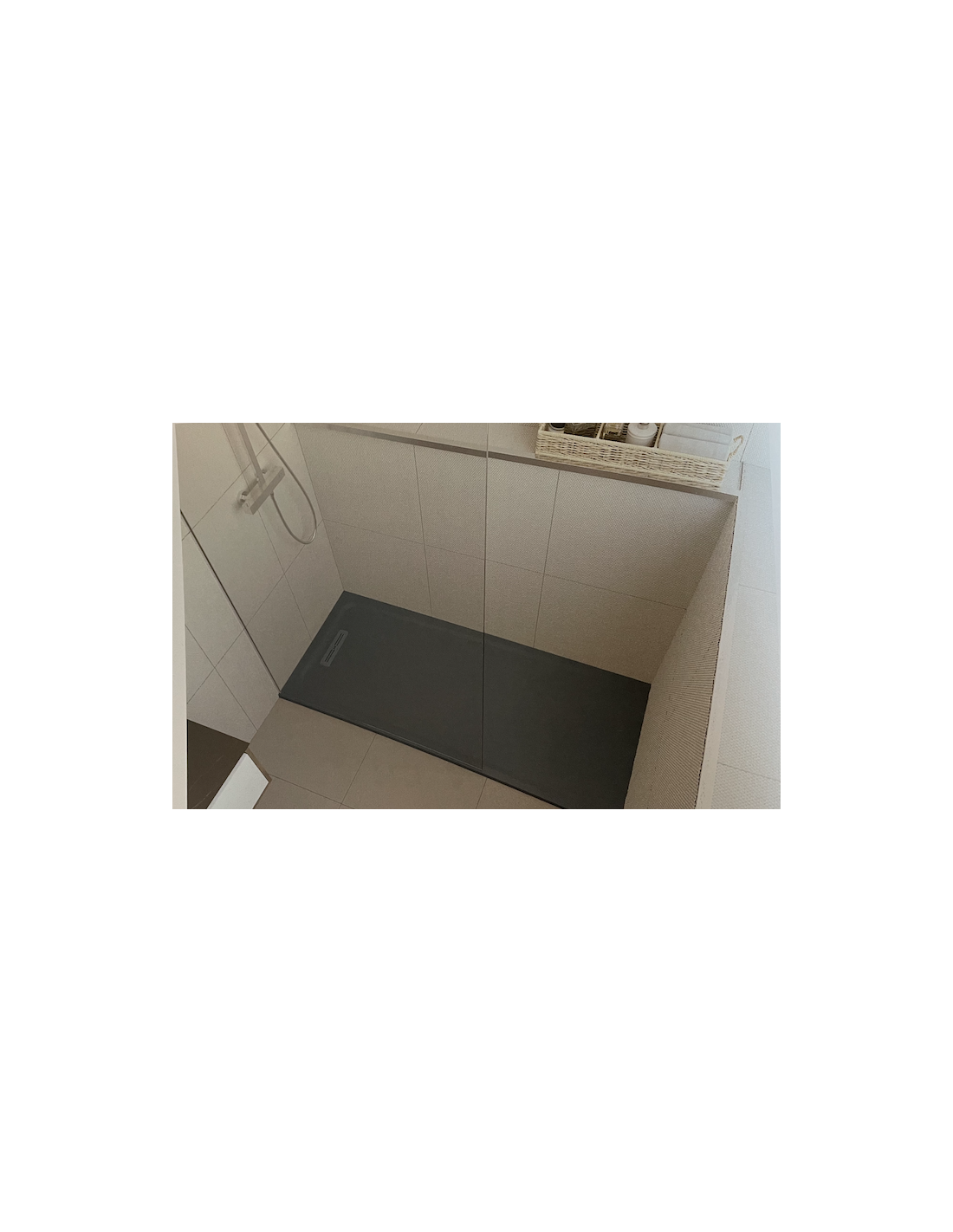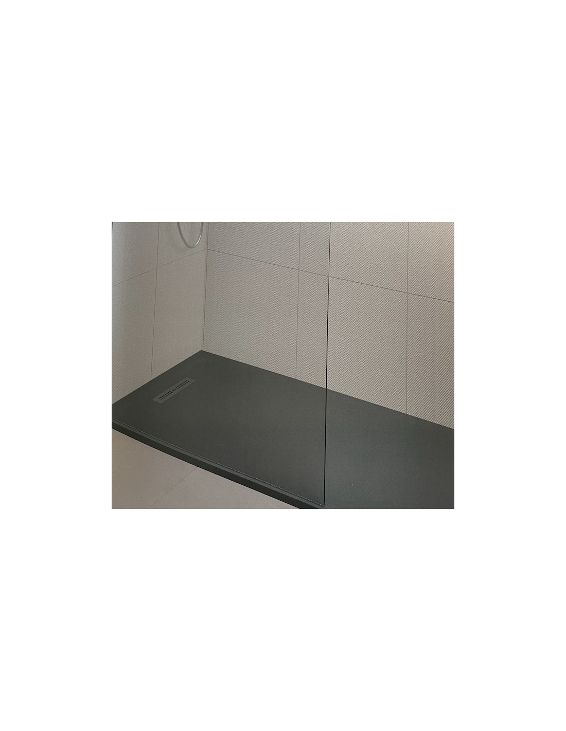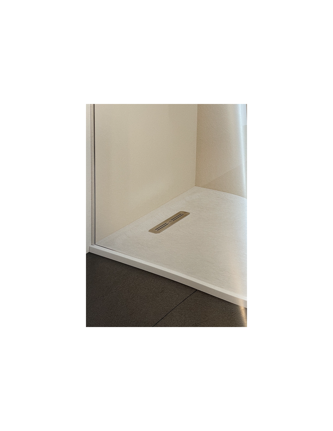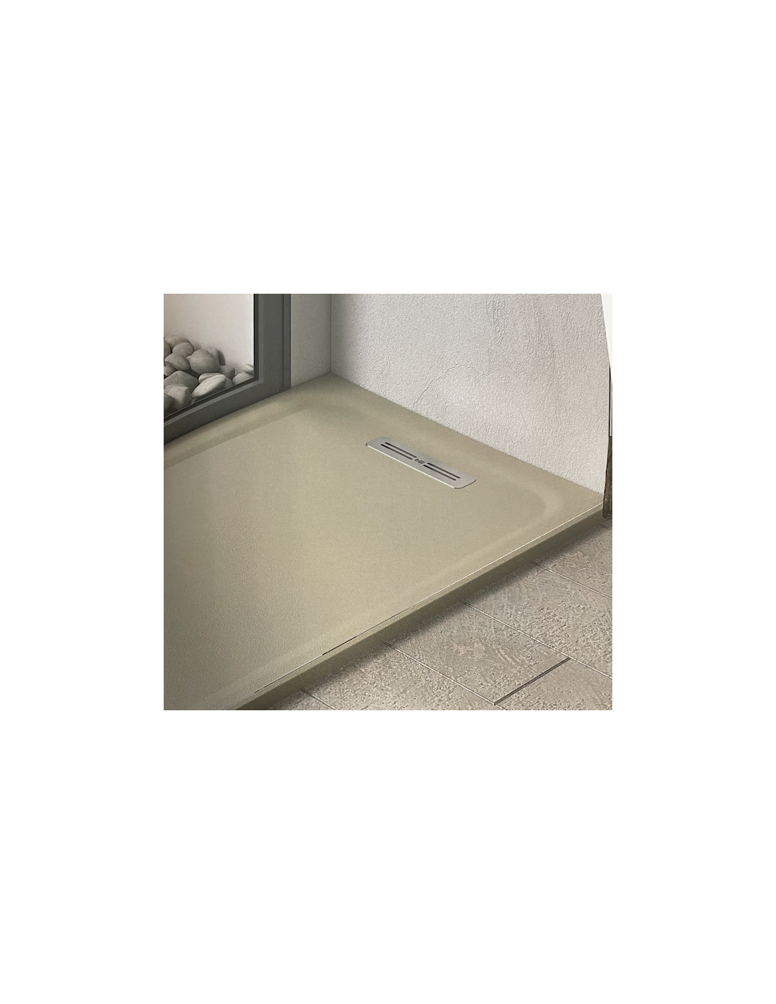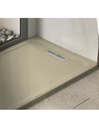 PLATO DE DUCHA: desagüe lineal de gran caudal (60l/min), con una textura smooth.