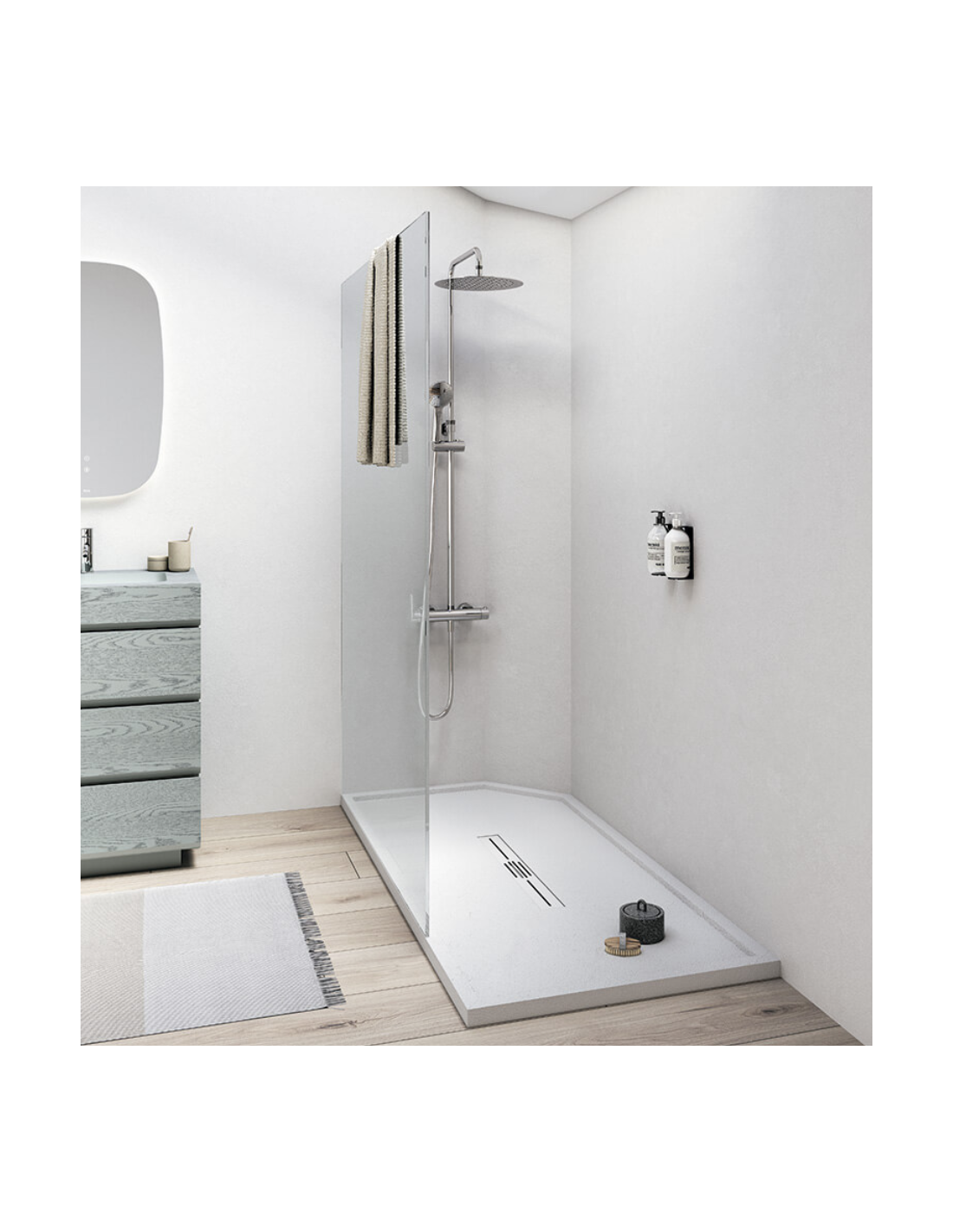 Un plato de ducha con un elegante desagüe central en acero inoxidable pulido, también con opción de lacado en los mismos colores que el propio plato. Privilege está disponible en versión extraplano o con marco a medida. Al estar acabado de forma manual puede ajustar sus medidas y contorno al espacio. Cuenta con opciones en 2 texturas -Pizarra y Liso- y 9 colores.