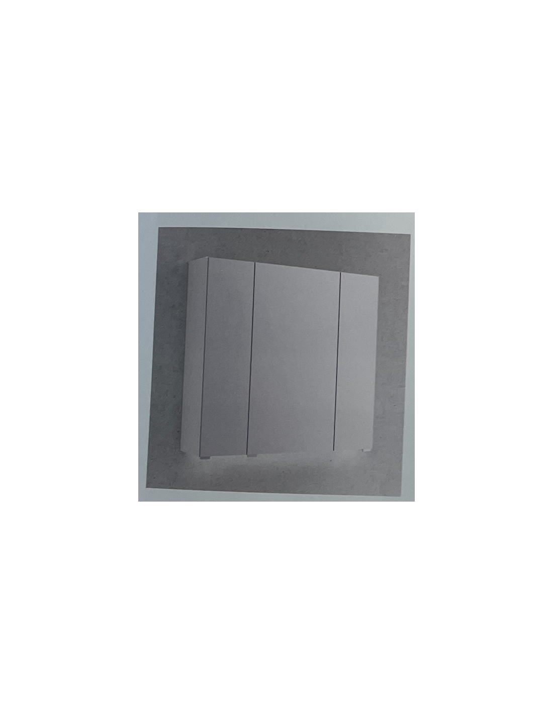 Camerino con disposición de puertas efecto triplico y tirador metálico cromado brillo. Perfil con acabado lavado brillo en blanco y antracita.