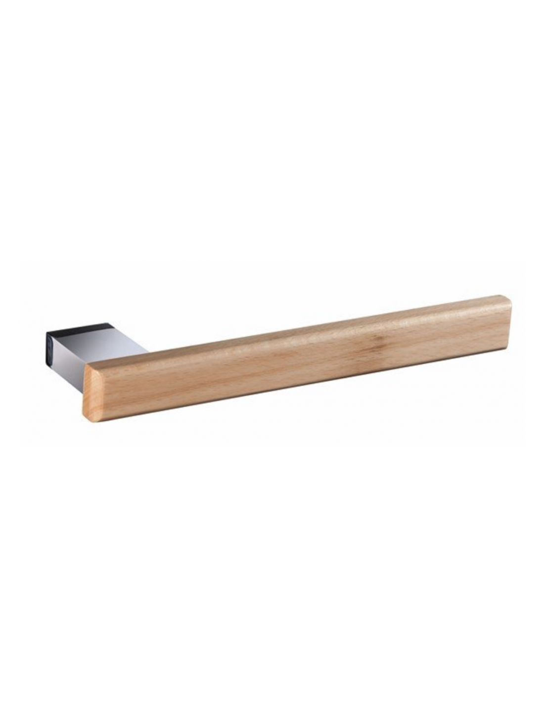 Toallero aro, este accesorio de baño es mas adecuado para colocar las toallas en la ducha, aunque también se utiliza de toallero para las pilas del baño. Cromo combinado con madera. Se puede sujetar a pared o bien con tornillos o si no queremos taladrar la pared con pasta adhesiva de alta resistencia Mtglue, la recomendada por Manillons Torrent.